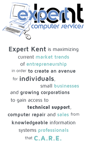 Expert Kent Computer Services, Inc. (Expert Kent) is a consultation, technical support, computer repair and sales company, intending to fill in the market need for courteous, affordable and professional information technology practitioners. The company emphasizes service and support to differentiate itself from more price-oriented computer companies.